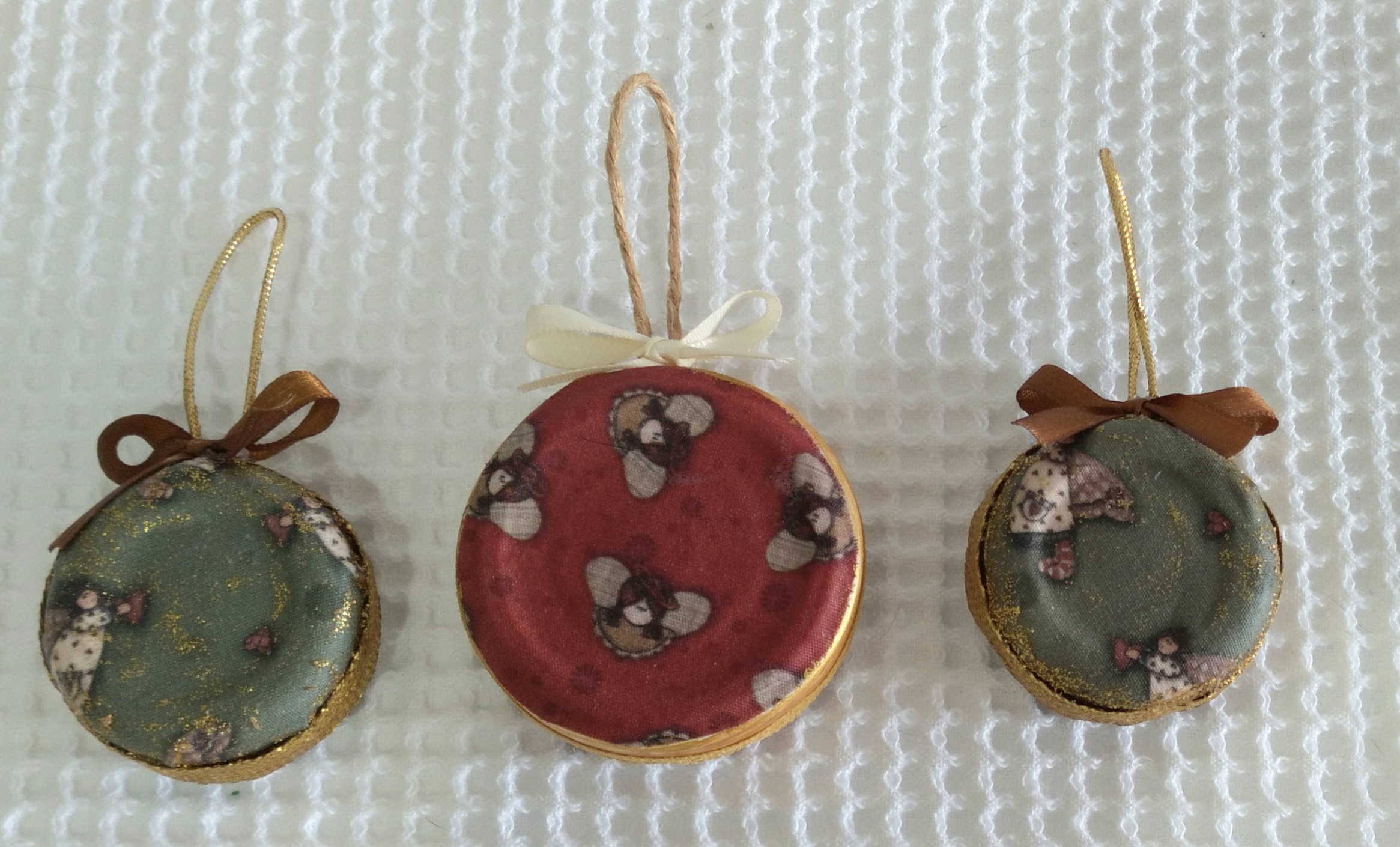Kit 3 enfeites com tecido, aplicações, fitas e cordãopara pendurar.